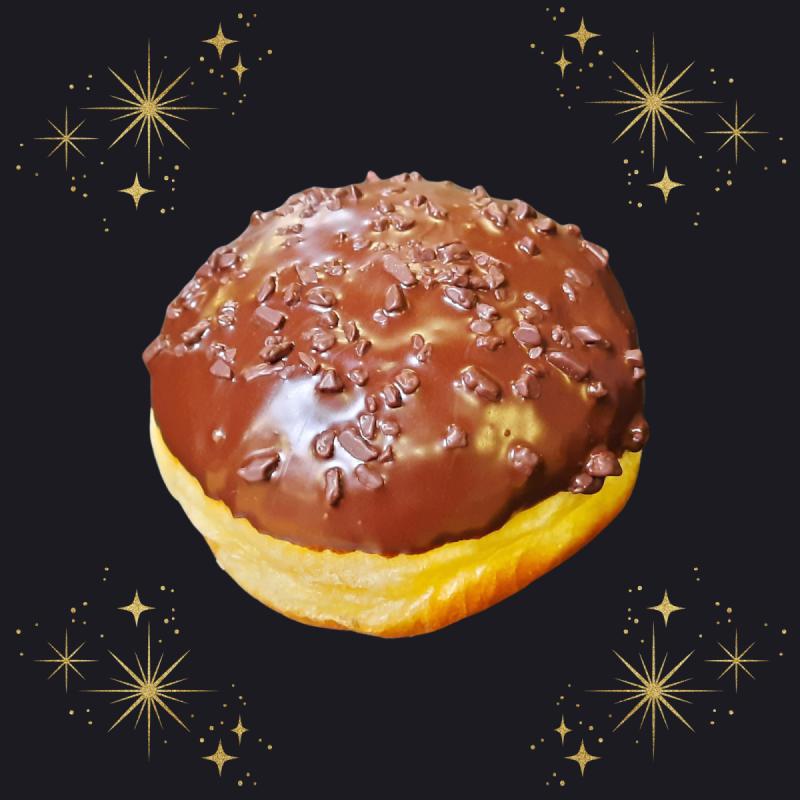frittierter Hefeteig mit Schokocremefüllung und Fettglasur